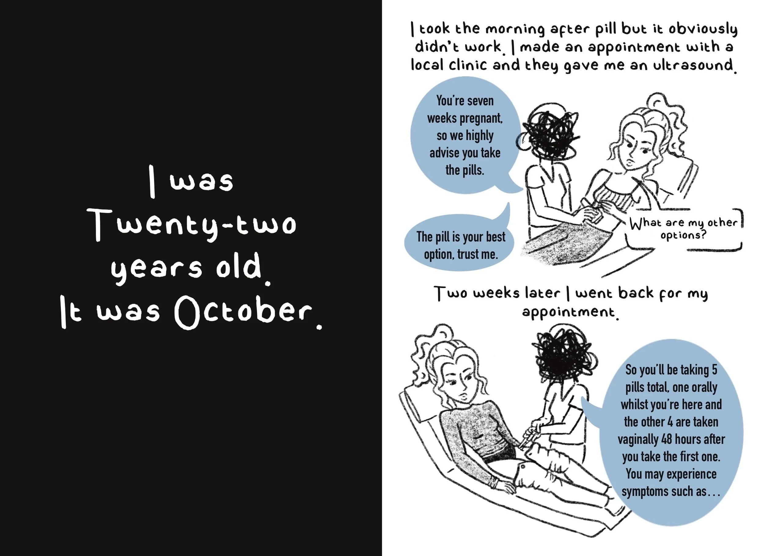 A biography following ‘Ella’ through her experience having an abortion. A special thank you to the woman who was brave enough to share her experience and who trusted me to accurately share her story with others through this zine.